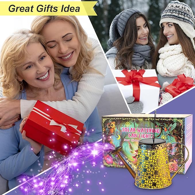 • Suitable for Indoor and Outdoor Use: VOOKRY's solar watering can provides 2 modes of use. You can use the included shepherd's hook to hang it in an outdoor garden and let it water your flowers with flowing stars. You can also put outdoor solar lights directly on its own, which is a good decoration for indoor tables, steps, flower POTS or balconies. (Note: Please put the power switch in the "on" position when charging during the day, and place the solar panel in a well-lit place).