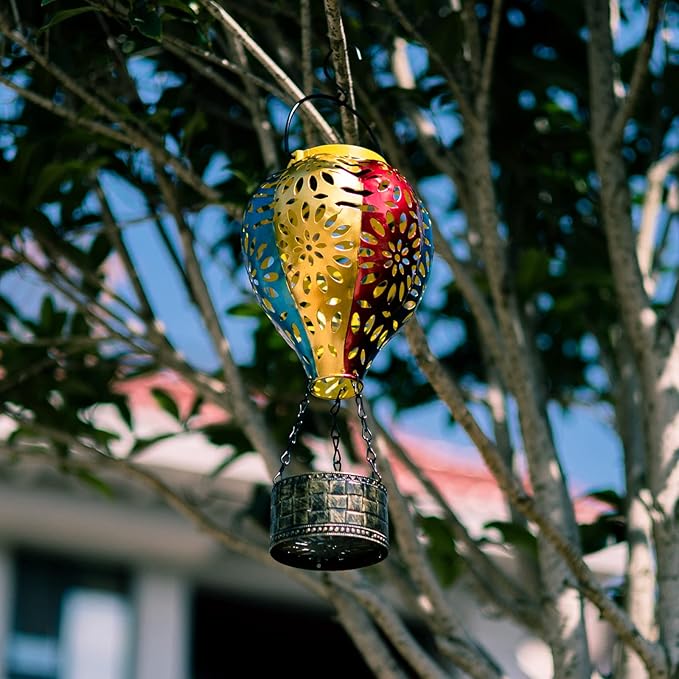 • 【Wide Application】This solar lantern lights come with a metal "S" hook, can be hung anywhere easily, such as balcony, porch, pergola, tree or a shepherd hook. In addition, hot air balloon has rich meanings, which represents courages, hopes, dreams, romantic love, so it's a great gift for your family and friends.