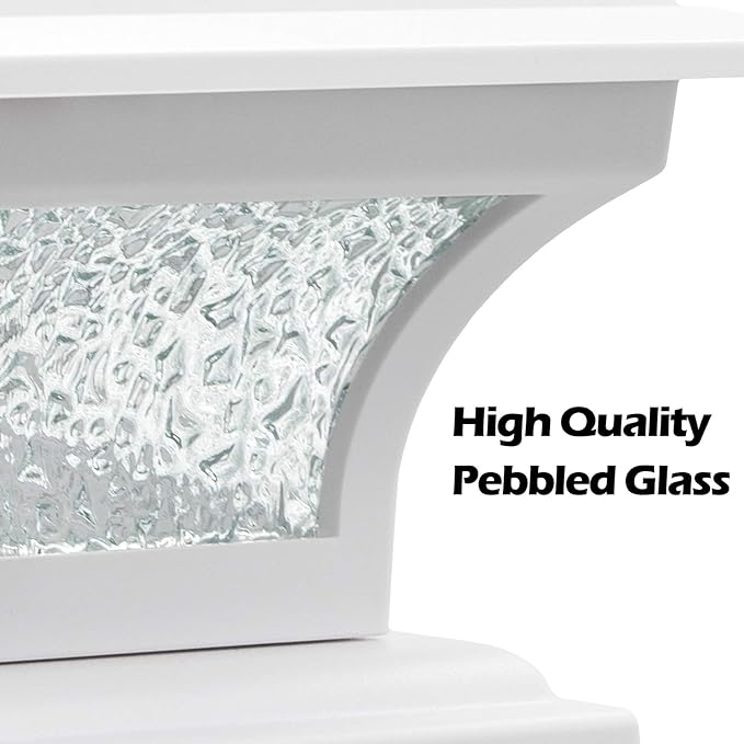 • 【High Quality Pebbled Glass】The 4 LEDs bulb in each cap can stay lit for up to 8-12 hours, and the pebbled glass will retain its color and beauty for years to come. Light easily mounts on top of any standard 4x4, 5x5, 6x6, inch wooden post.