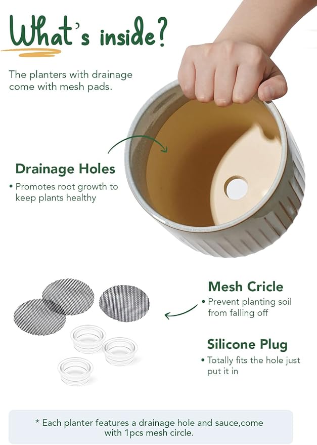 • Silicone Plug, Drainage Hole & Net: Give your plants the best of both worlds with flexible draining options; Choose to use the silicone plug for moisture control or the mesh pad to prevent soil loss and promote proper ventilation