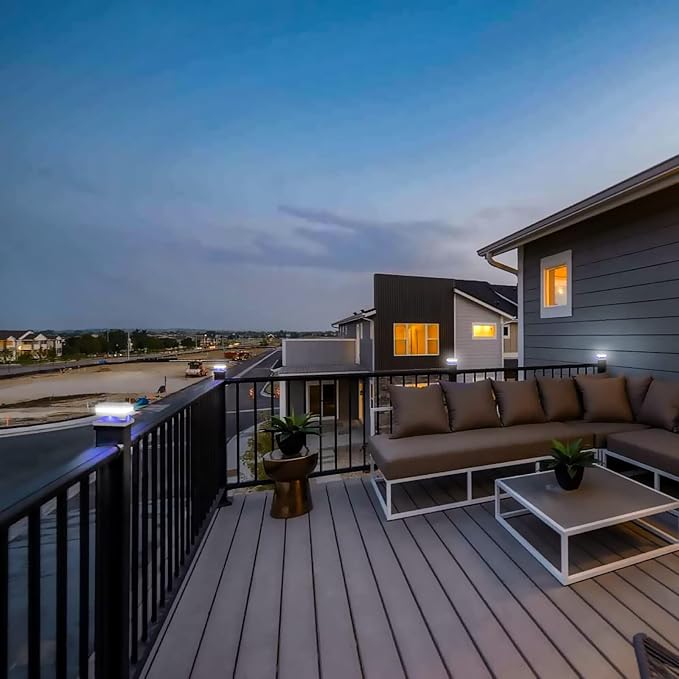 • Unique Design: Modern outdoor solar fence post light, each with 4 unique blue led around decorative, main lamp built-in 52pcs white SMD LED to provide 160lm/w 6000K white high brightness lighting, adding radiance and distinction to gardens, yards, or decks, creating a decent and well-lit lighting to your outdoor environment.