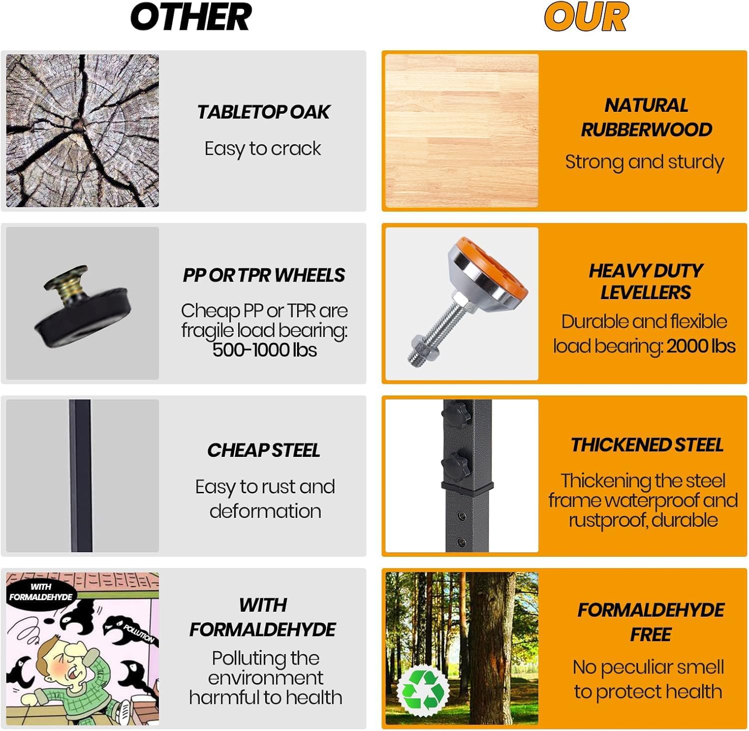 • 【Durable Material & Sturdy Base】Featuring 4 steel legs and 1.2" stronger rubber wood countertop, the stable and durable work bench ensures high weight capacity (up to 2000 lbs). Besides, it is free of burrs to prevent stabbing of the skin and it does not deform easily