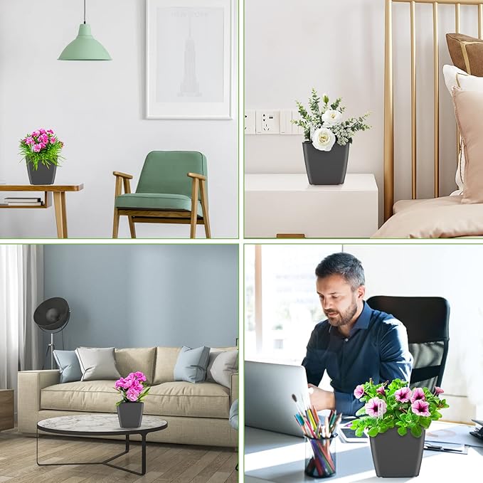 • 5.2 inch Square Plastic self watering Flower Planters the outer pot is used to store water while the inner pot is used to place plants and soil. The special water inlet can keep the surface of the soil dry all the time. It won’t rot the soil to create odor and attract insects.