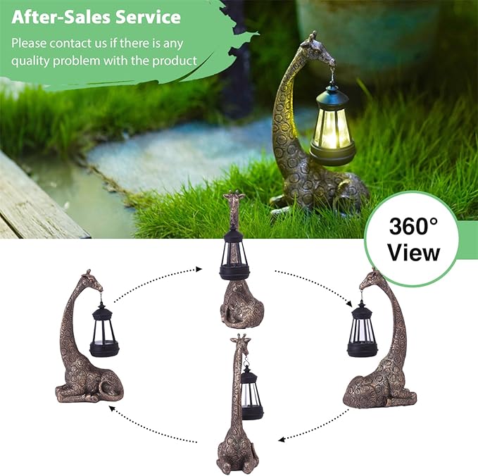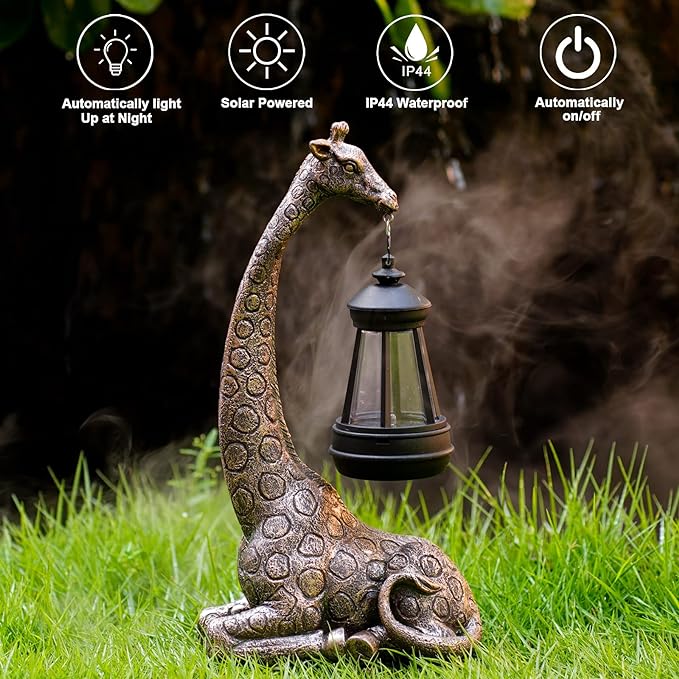 • 【Whimsical and Unique】: Add charm to your home and garden with this 11-inch giraffe statue that includes a solar-powered lantern for stunning visual appeal