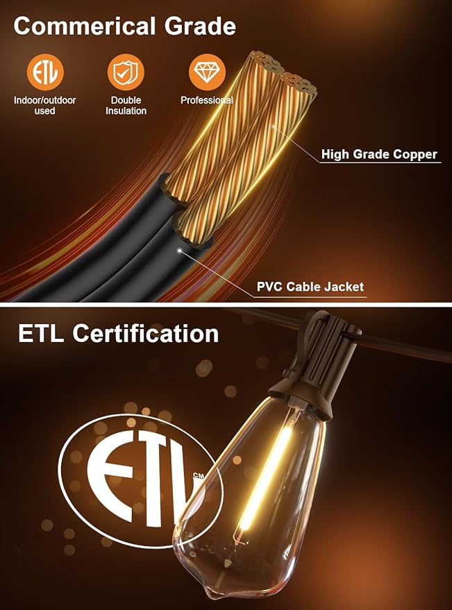 • 【All Weather Resistance】 Since string lights for outside so better selecting that stands up to rainy snow wind conditions is important, cause It’s inconvenient to take the string lights down every time in the forecast.