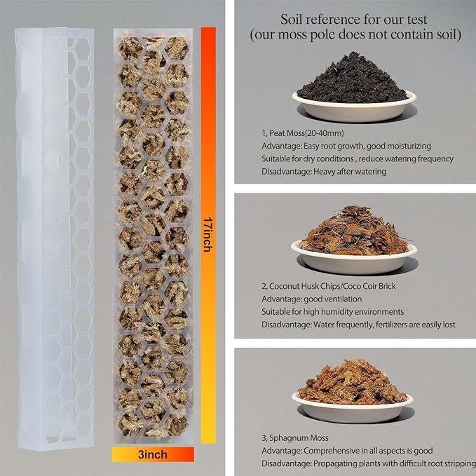 • [Perfect an Ideal Growth Environment] We strongly suggest using sphagnum moss or Coconut soil or soil mix with our plant sticks for best effect because it can provide water and micronutrients for creeping plants for a long time. Besides, our product will not end up rotting even if it stuck inside the soil for too long.