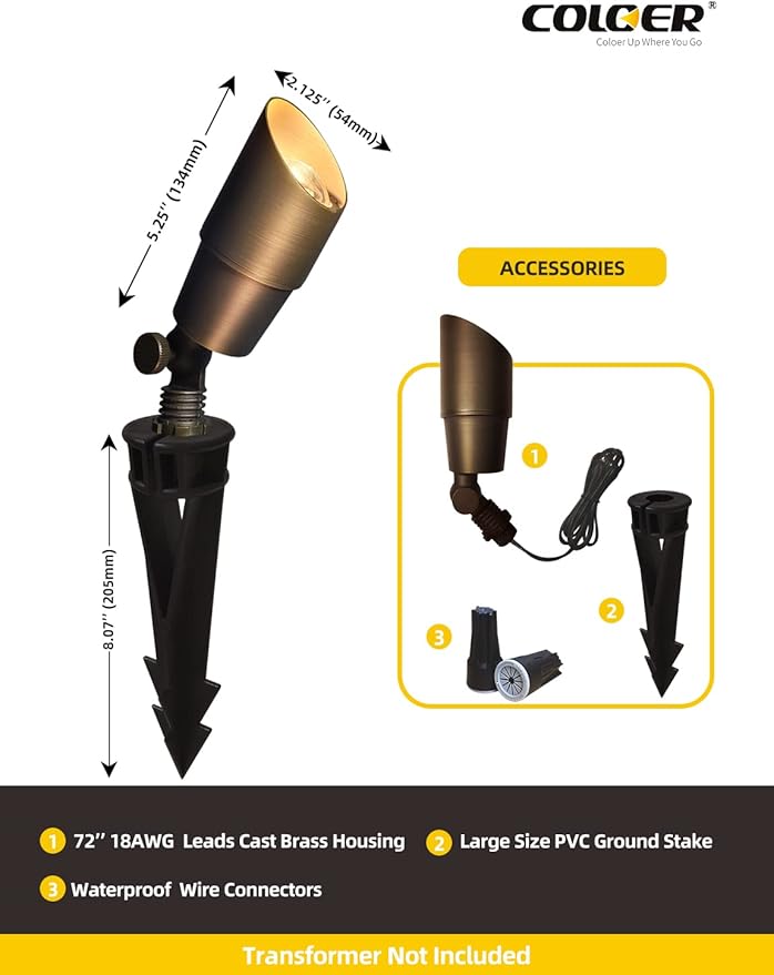 • Lifetime Warranty: The COLOER house spot lights outdoor uses a design with separate light fixture and bulb, which offers a longer lifespan compared to the non-detachable integrated design. You can replace the bulb without having to replace the entire fixture just because the bulb is broken. We offer a lifetime warranty on the brass light fixture. We stand behind our product with our top-rated customer service. Please don't hesitate to contact us if you have any issues.