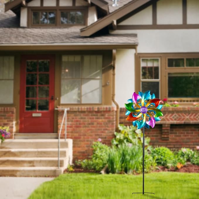 • 【Withstand all Weather】Colorful windmill blades with anti-rust coating, not easy to fade. 2 prong arch anchor stand for extra stability.