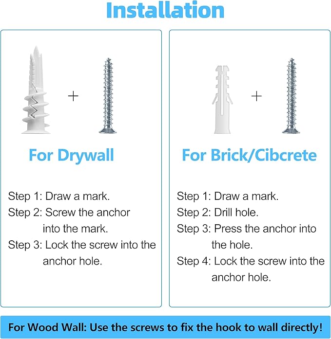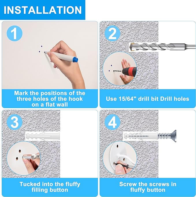 • LOADING WEIGHT --- The hooks can holds up around 50 pounds weight, Ensures stability and strength, suitable for interior and exterior use.