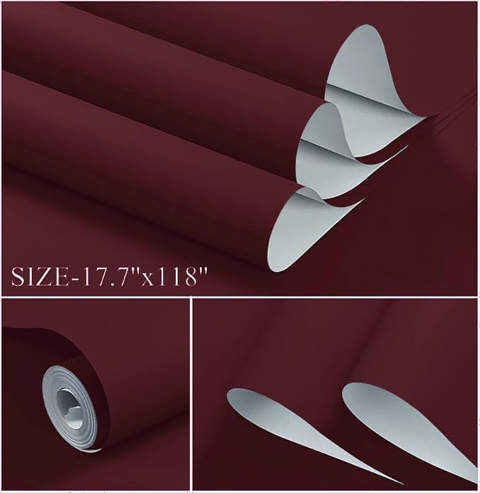 Dimoon 78.7''x17.7'' Red Peel and Stick Wallpaper Contact Paper Modern Self Adhesive Wall Paper Removable Renter Friendly Textured Solid Color Shelf Cabinet Vinyl Roll (78.7''x17.7'',Retro Red)