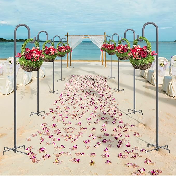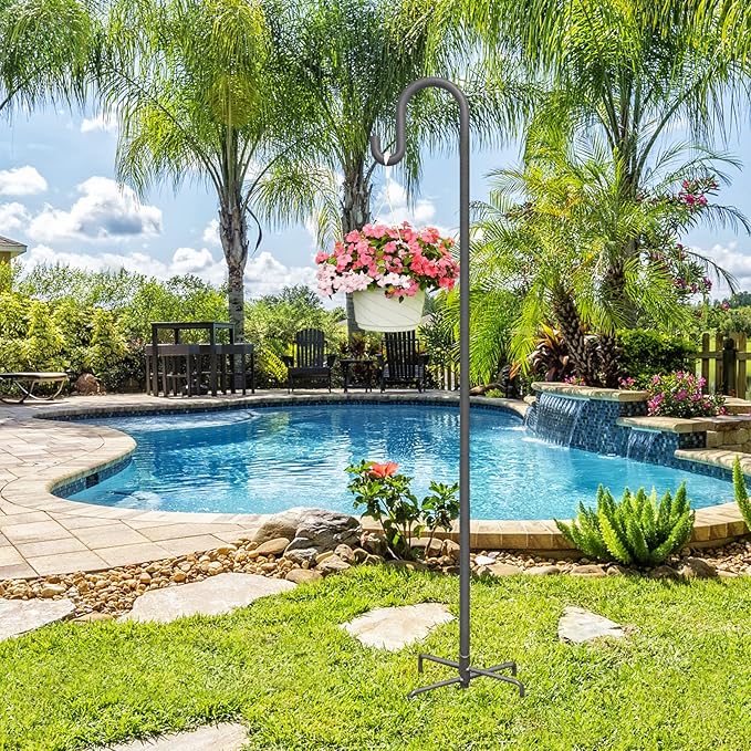 • 【Multipurpose Bird Feeder Hook for Outside】This shepherd hook is perfect for hanging almost anything you want in the garden or patio, such as hummingbird feeders, birdhouses, solar lights, lanterns, wind chimes, small flower baskets, succulents, wedding decorations.