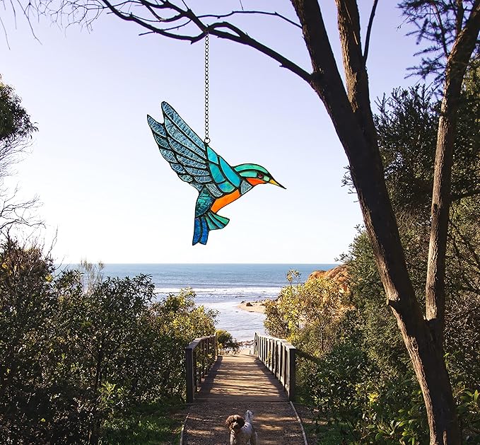 • The bright colors of the stained glass bird suncatcher are very beautiful when hung on the window. When the sun shines through the glass, it can reflect the bright colors, which will make your home beautiful.