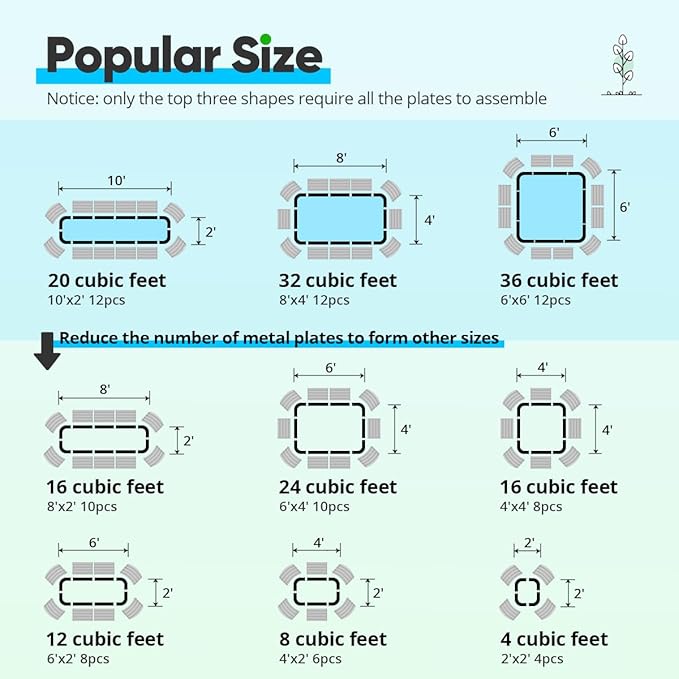 • 【DIY Configuration】The metal garden bed can be assembled into different configuration, you can use all the metal plates or use less metal plates to form different sizes. It's perfect for you to change sizes according to your places and numbers of plants, good for decorating your garden.