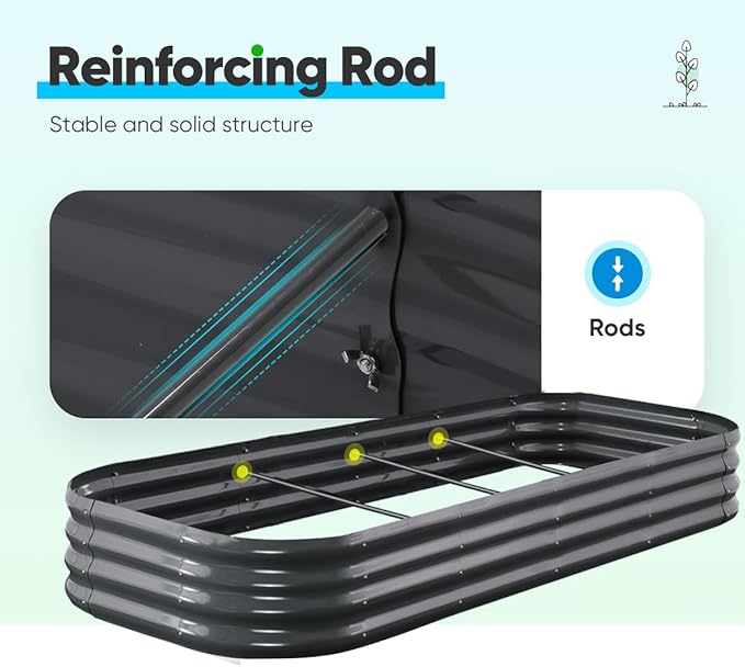 • 【Crossbar Strengthened】Due to crossbars in the middle of ground garden box, the structure of this garden bed is much more stable, it has bigger capacity of weight than others. It won't crack or bulge at joints of 2 metal sheets, provide your plants a long-lasting home.