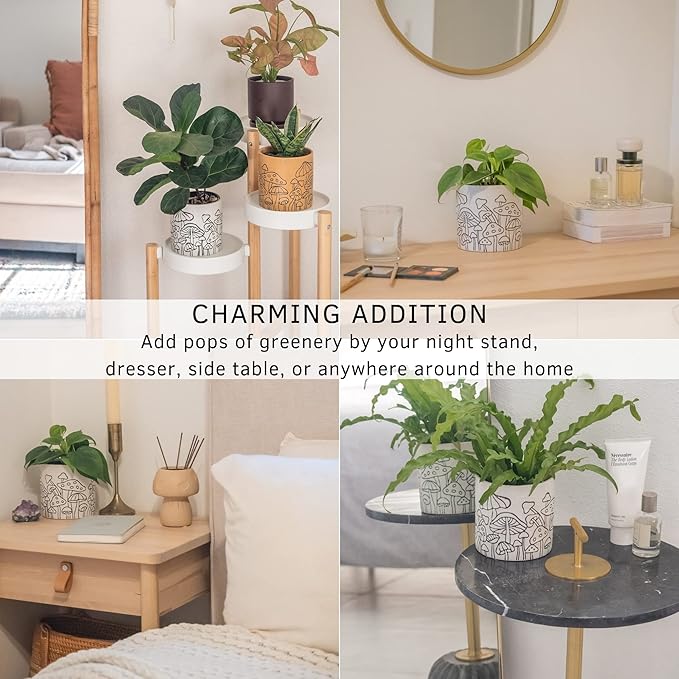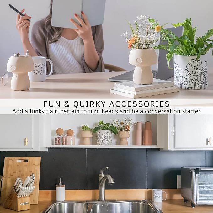 • Mushroom Planter with whimsical etched design all around. Fun and quirky decoration sure to make a cottagecore statement. Holds small indoor plants, fresh flowers, and succulents