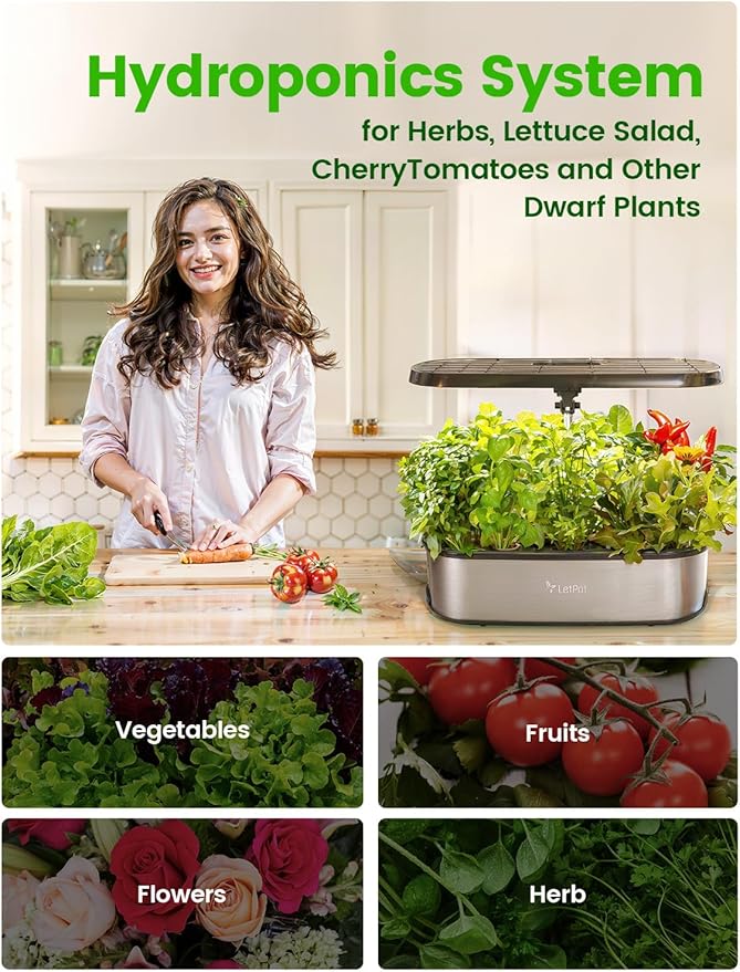 • QUALITY AND SERVICE FIRST: Our hydroponic growing system is crafted with quality and durability in mind. Featuring a stainless steel surface and a double-layer design with an inner wall made from top-level resin and an outer wall made from stainless steel, it's both easy to clean and maintain. Plus, all LetPot products come with a lifetime of service and continuous remote hardware and app upgrades via Wi-Fi, ensuring you always have access to the latest features and support.