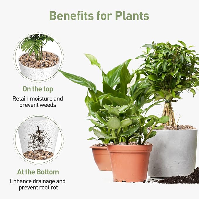 • 【Pea Gravel for Plants】These gravels also work well in improving drainage and air circulation, helping retain soil moisture and prevent soil erosion. It is ideal for small potted planters, cactus and succulents.