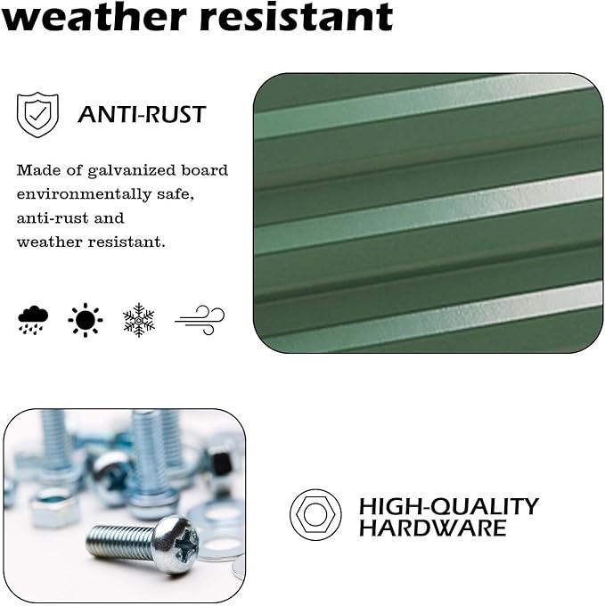 • MATERIAL: The raised garden bed is made of galvanized steel that have been powder-coated.Unlike plastic and other treated wood, it's environmentally safe, rust resistant, and provides a higher performance for a long time using