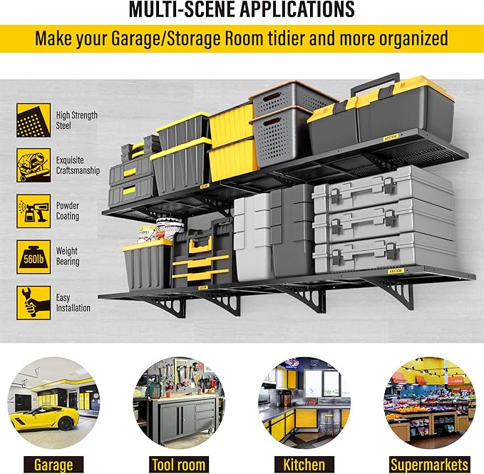 • Easy Installation: Includes high-quality screws and a detailed instruction manual, allowing one person to effortlessly complete the setup. This 1.64x4ft garage shelf wall mount offers ample storage space for your garage, kitchen, or pantry, keeping everything organized and within reach