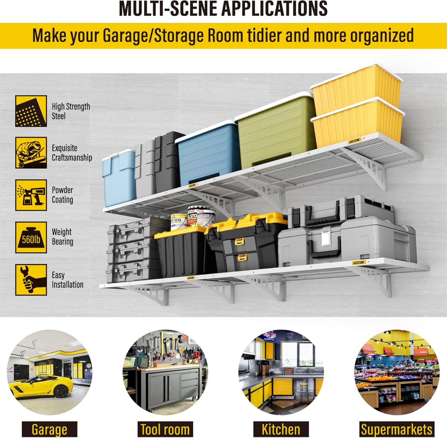 • Premium Craftsmanship: This garage wall shelving is crafted from a single steel sheet, precision-stamped and folded for strength. Unique high-density hole design enhances functionality while delivering a sleek, modern aesthetic