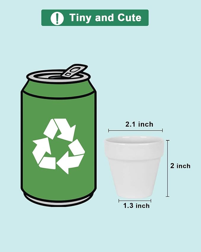 • 【Mini and Lovely】The white tiny ceramic pots for plants, 2 inches in height, 2.1 inches in outer diameter, are designed for holding small succulent, cactus and herbs. There are 48 pcs pots in the package, plants and soil are not included