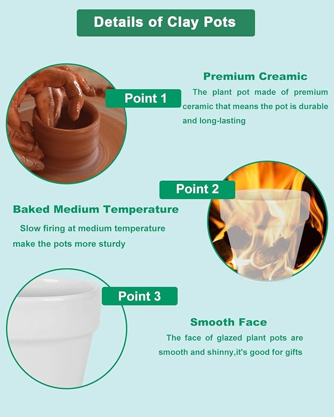 • 【Premium Quality 】 The white ceramic pot made of top-quality clay and baked at 1796°F high temperature, each ceramic pots with black paint features great durability. All packages have passed the 3-foot drop test to ensure the pots stay intact during delivery.
