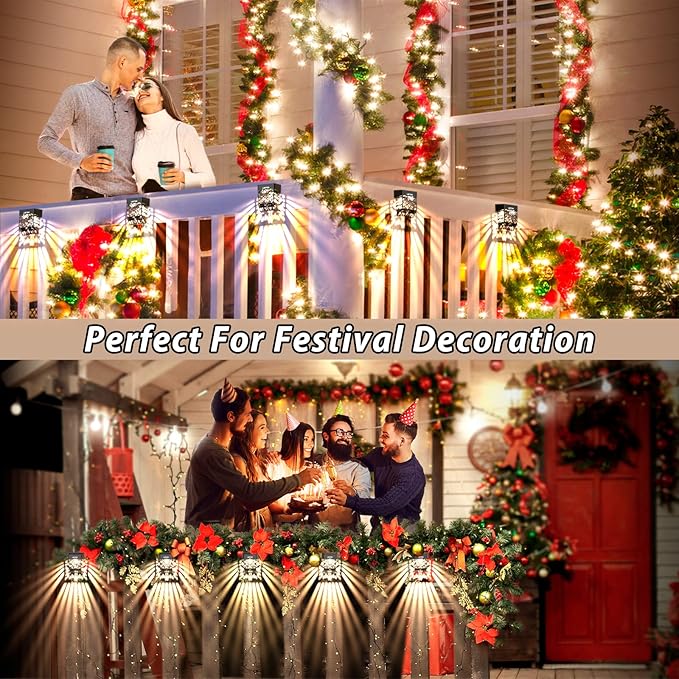 • 【IP54 Waterproof Fence Post Solar Light 】- The outdoor solar lights are composed of sturdy and durable ABS shell, and equipped with high-quality poly-silicon solar panel with IP54 waterproof performance which allows it to withstand rain, snow, thunderstorm, frosting. No external wiring, No battery replacement, eliminate installation trouble and the risk of accidents. Provide safe and long time lighting to your life