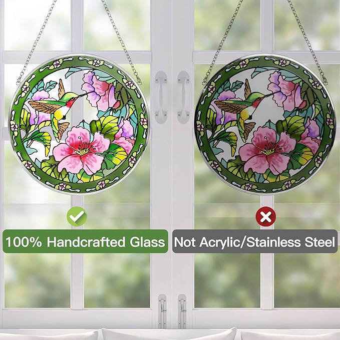 Suncatcher Stained Glass,100% Stained Glass Window Hanging,Hummingbird Sun Catchers Indoor Window Decor,Suncatchers for Windows Hanging, Stained Glass suncatcher Gifts for Women、Christmas (6.5 inch)