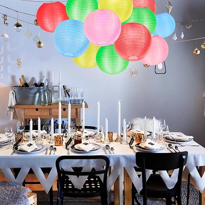 • Package Includes: Contains 10packs Multicolor 10inch Silk cloth lanterns. KNONEW outdoor silk lanterns are the perfect touch for any event! Whether you're planning a wedding, birthday, or backyard bash, these silk lanterns light up the space and add a fun, festive vibe! They’re the ideal size—10 inches—not too big, not too small, just enough to "WOW" your guests.