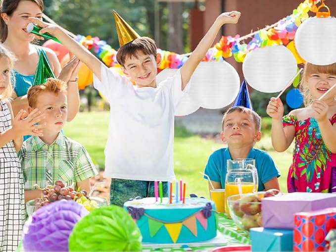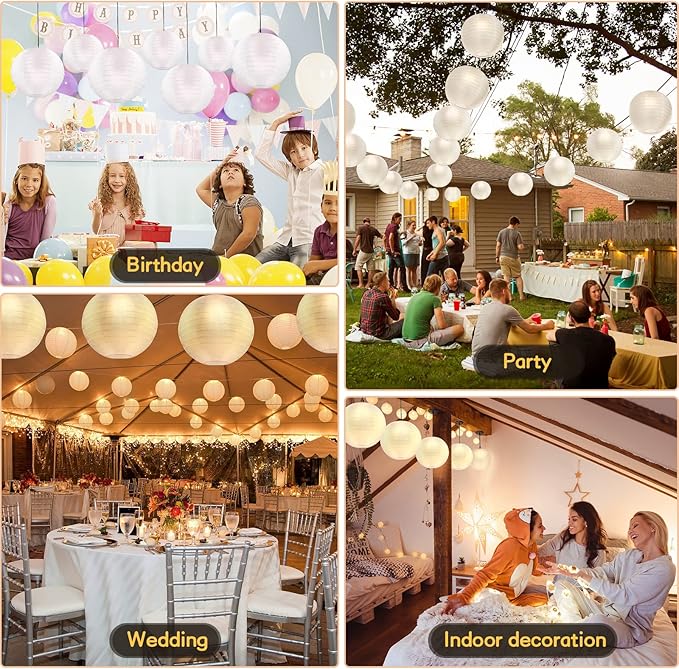 • Perfect Decoration for Any Event: Add decorative Hanging White Lanterns, your family and friends feel more joy and cheerful ambiance of the weddings, birthdays and other celebration. Also perfect for outdoor decoration, like courtyard, summer garden party and other white theme party.