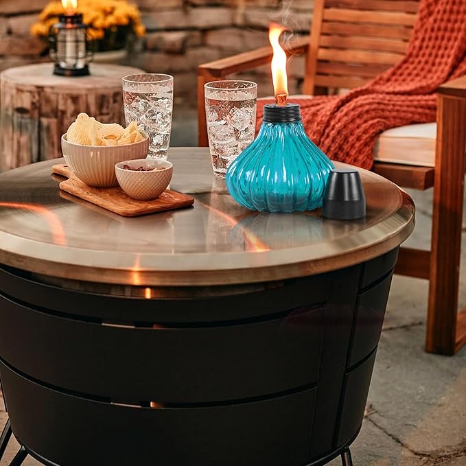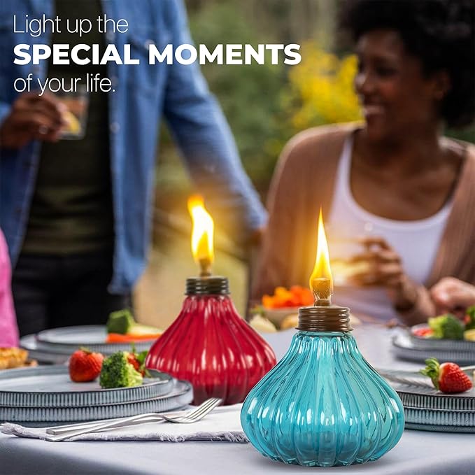 • LIGHT UP WITH EASE: Our offered tabletop table torches feature thick glass, high quality fiberglass wicks, and snuffer caps. For best burn, fill the canister with fuel, insert the wick so it's no more than ½" above the canister, and allow it to saturate for 10-15 minutes. These tips will ensure that the wick will last the lifetime of your torch.