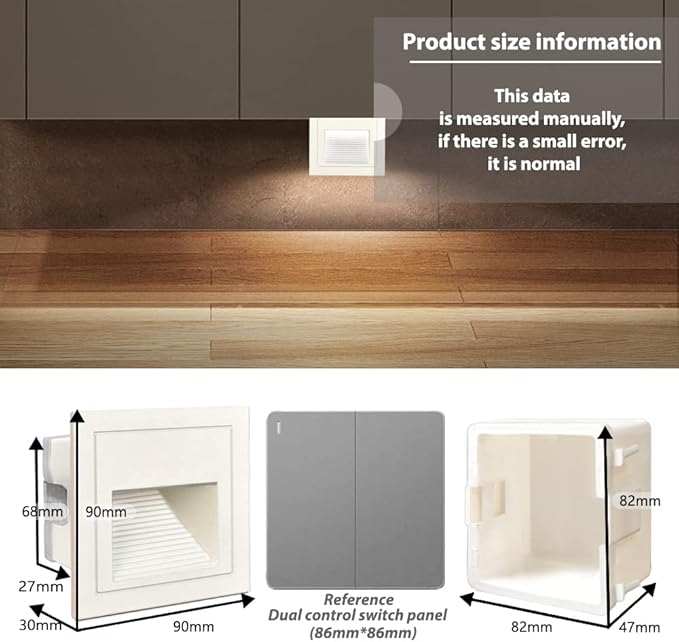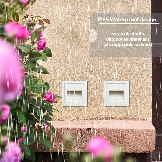 • Good quality: White shell, cool white 6000K, aluminum corner staircase light step light, IP65 waterproof, suitable for indoor and outdoor; IP65 can prevent the splashing water, but cannot be installed directly under water