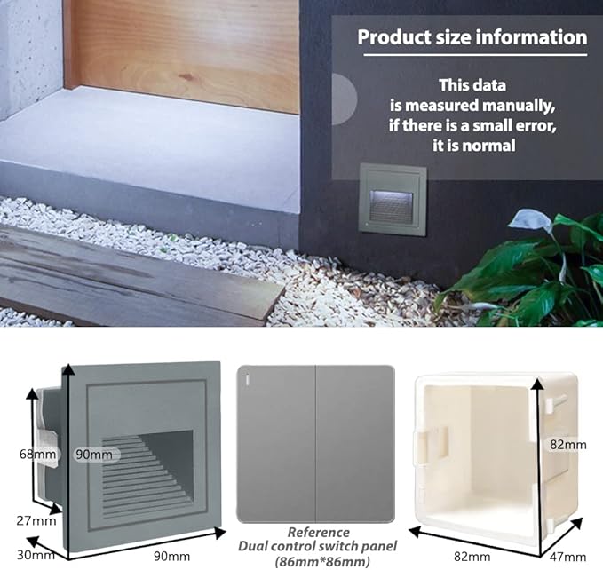 • 【Good quality】Grey shell, cool white 6000K, aluminum corner staircase light step light, IP65 waterproof, suitable for indoor and outdoor. (IP65 can prevent the splashing water, but cannot be installed directly under water)
