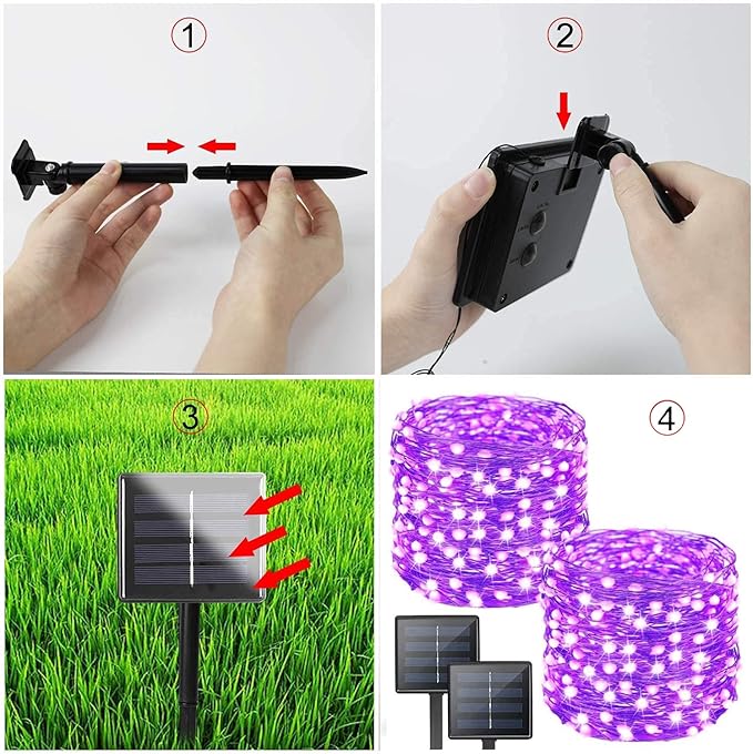 • [8 Lighting Modes & Memory Function]: These purple solar lights feature 8 lighting modes including flashing, steady-on, and slow fade—great for Halloween parties or ambient garden lighting. Built-in memory saves your last mode setting, no need to reset every time.