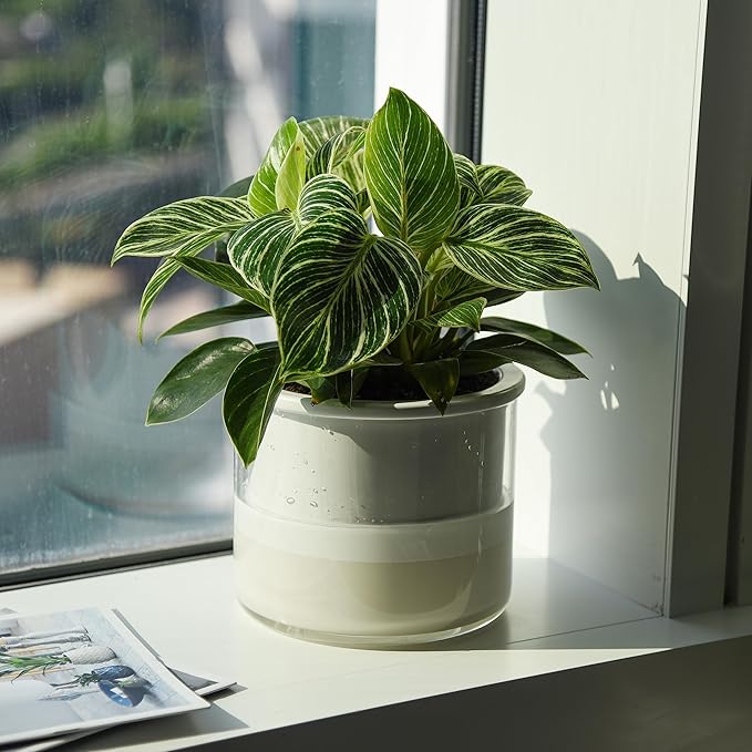 • Self-watering System: The bottom section of the white terracotta pot is unglazed, just fill the glass container with water to ensure plants will absorb only what they need through the terracotta pot walls.