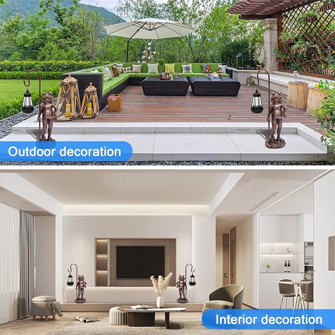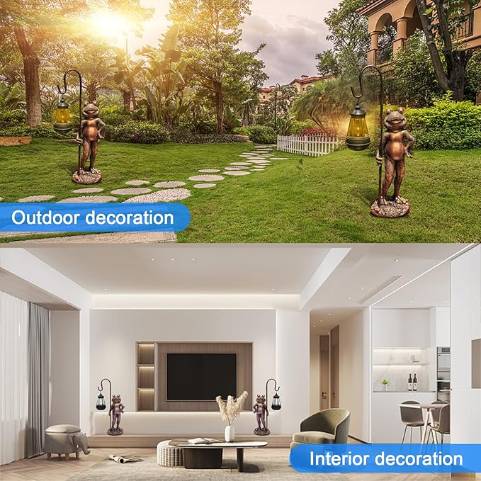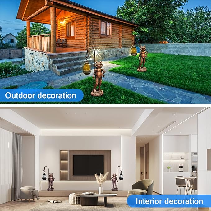 • Unique design - Unique statue is standing frog with solar lamp. Our solar Lantern Frog uses a bronze appearance, which is very much in line with the artistic beauty of the design.