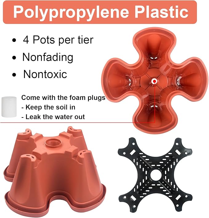 DUNCHATY Stackable Planters 7 Tier Vertical Garden Planting Tower Planters Strawberry, Herb, Flower, and Vegetable Planter Indoor Outdoor Gardening Pots with Removable Wheels and Tools