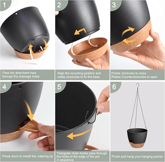 • Drainage Holes - The hanging planter multiple drainage holes can help you avoid over-watering and release excess water. Separate the potting soil from the water surface, enter the water through cotton rope perforations to keep the soil moist and the roots healthy. Self watering flower pots provides the best amount of water for your plants.