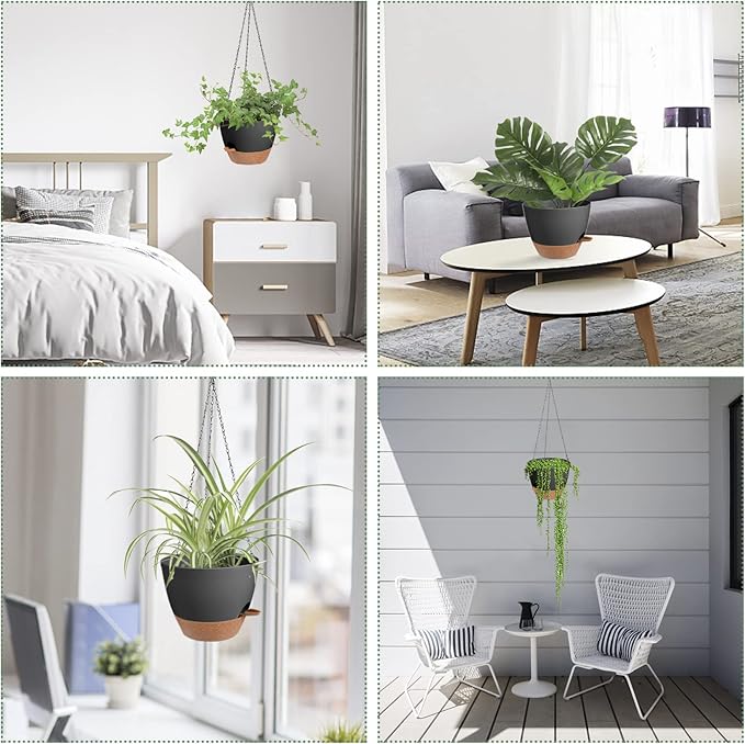 • Removable Trays - Hanging pots for plants indoor tray can be removed as a reservoir for self-watering, where excess water from the self-watering plant pots is drained into the tray, which stores a certain amount of water for the plants (7-14 days). You don't have to worry about your plants running out of water when you're away on a business trip or traveling.