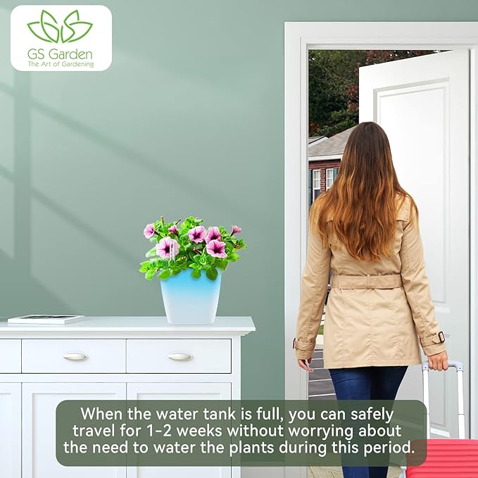• Convenience: GS Garden self watering pots are incredibly convenient as they require minimal effort to maintain. You can set up a self-watering planter and then just forget about it until your plants need to be watered again. This is perfect for busy people who want to enjoy the beauty of a garden but don’t have the time to constantly water it.