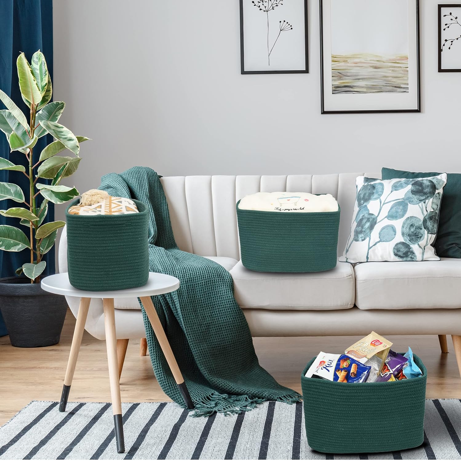 • 2, Nature, safe and durable decorative basket for storage: We use heavier and non-toxic coiled cotton rope to make sure the quality of this cute rope basket. Those rope baskets is safe for people and Pet. No odor smell. As its soft, its foldable and easy to store as well.