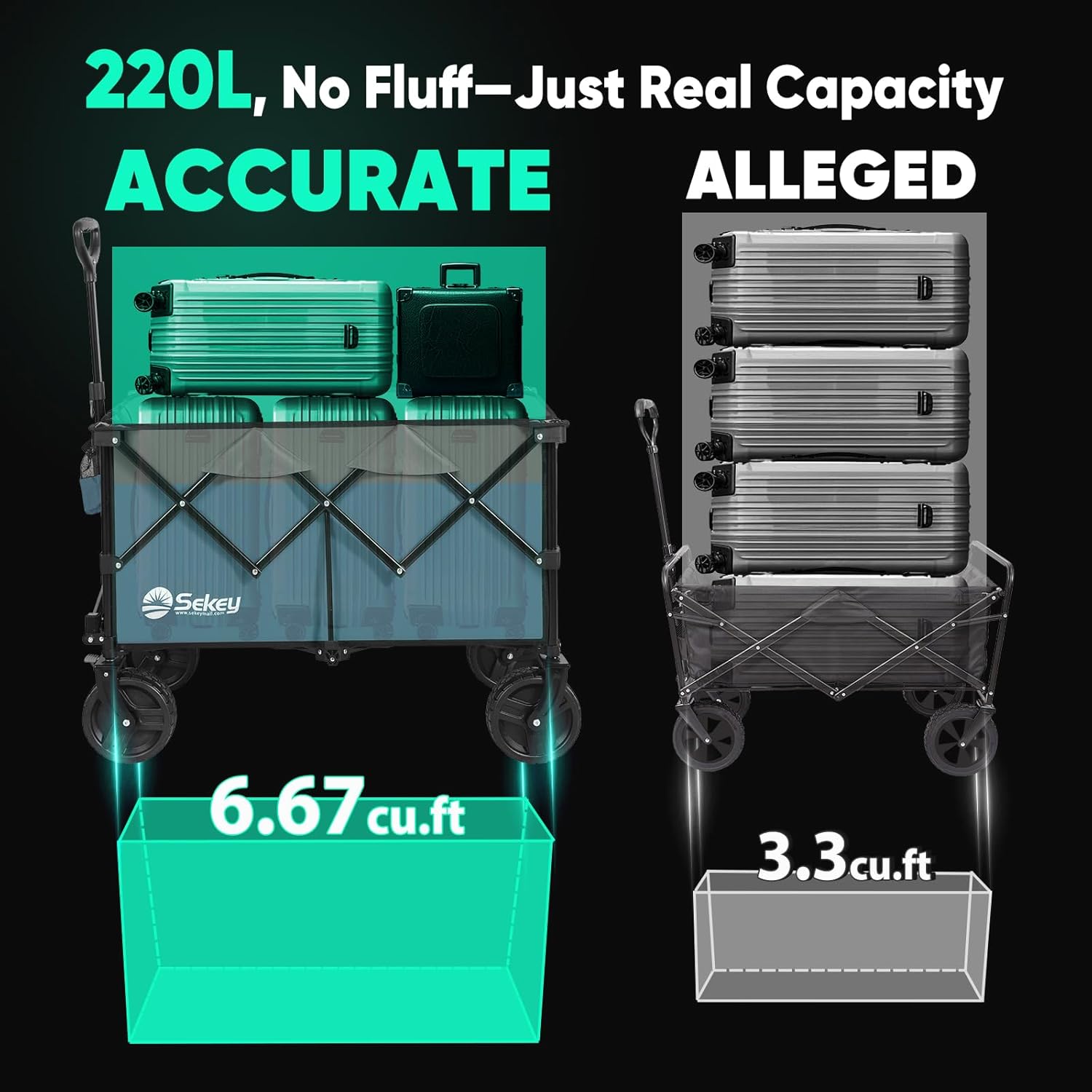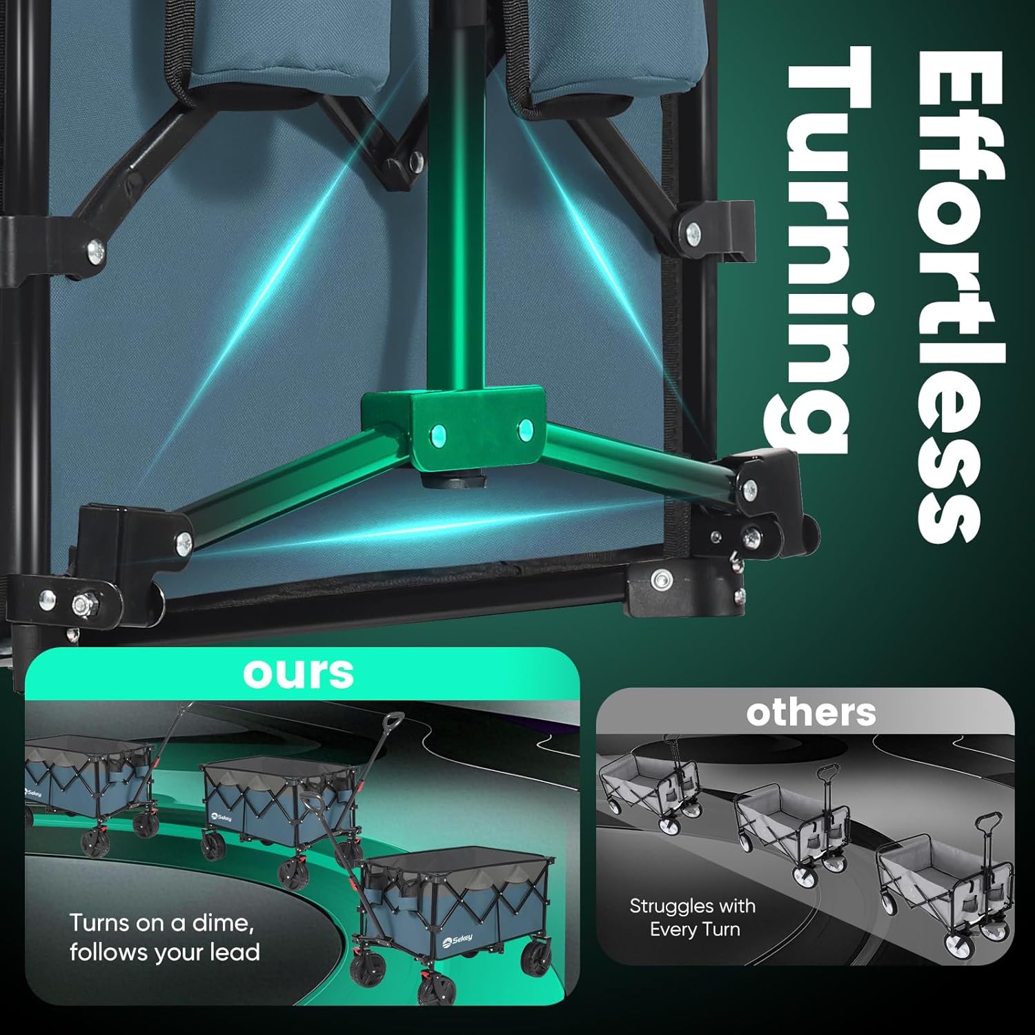 • 【𝐆𝐨 𝐀𝐧𝐲𝐰𝐡𝐞𝐫𝐞 𝐖𝐡𝐞𝐞𝐥𝐬】: Featuring 𝟖" 𝐝𝐢𝐚𝐦𝐞𝐭𝐞𝐫 𝐰𝐡𝐞𝐞𝐥𝐬 𝐚𝐧𝐝 𝟑" 𝐰𝐢𝐝𝐞 𝐭𝐫𝐞𝐚𝐝𝐬, Sekey wagon glides effortlessly over sand and rough terrain. The 𝐚𝐧𝐭𝐢-𝐬𝐥𝐢𝐩 𝐫𝐮𝐛𝐛𝐞𝐫 strip enhances traction and reduces vibrations, while the 𝐛𝐮𝐢𝐥𝐭-𝐢𝐧 𝐛𝐫𝐚𝐤𝐞𝐬 provide reliable stopping power wherever you go.