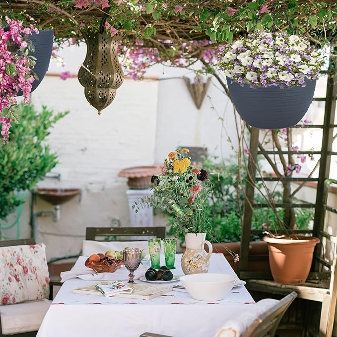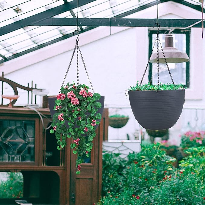 summer flower 2 Pack 9.9 Inch Self Watering Hanging, Deep Planters Hanging Pots for Indoor Outdoor Plants Hanging Baskets Hanging Plant Holder Plant Hanger for Flower Garden Porch Ceiling (Dark Gray)