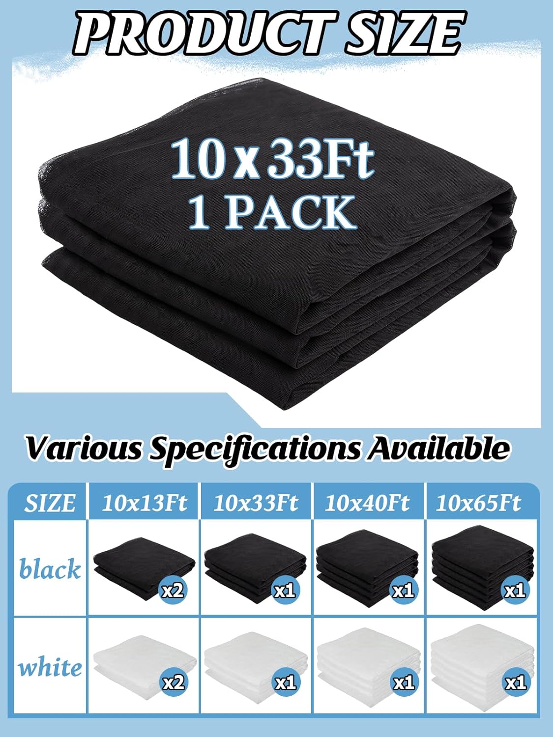 • What You'll Receive: You will get a black garden net barrier with dense mesh, measuring 10ft x 33ft. It's quite large and soft so you can easily cut it into different sized pieces as you need.