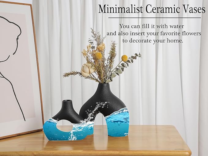 • HIGH QUALITY: Made from high quality black porcelain with an even texture and a special frosted feel. 100% handmade ceramic vase set of two, it is elegant and attractive with its glaze.