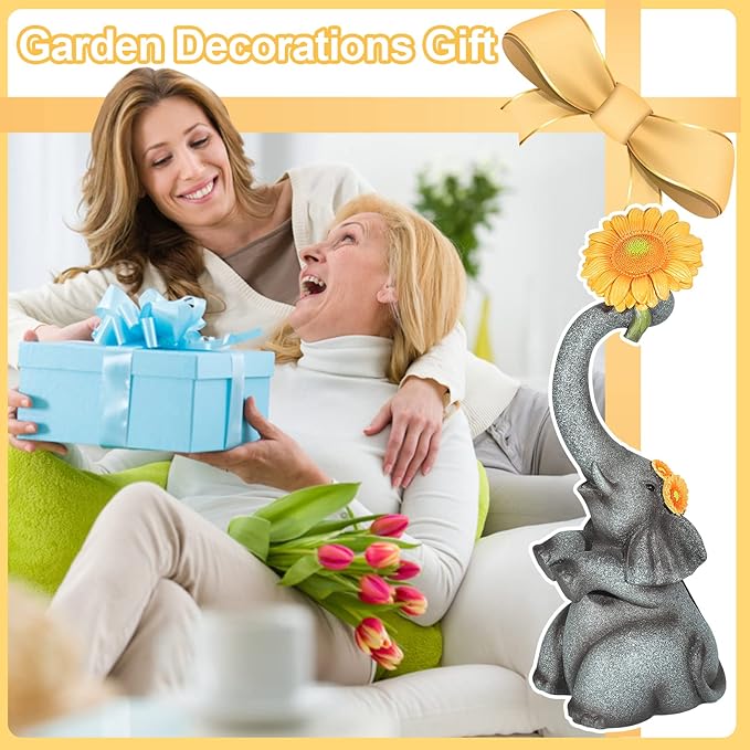 • ELEPHANT GIFT: Our original design elephant and sunflower garden statue is a versatile, thoughtful, and sentimental elephant gifts for women and men. The elephant is symbolic of strength, loyalty, and good luck, adding extra meaning to the gift. Perfect for birthdays, anniversaries, and housewarming parties.