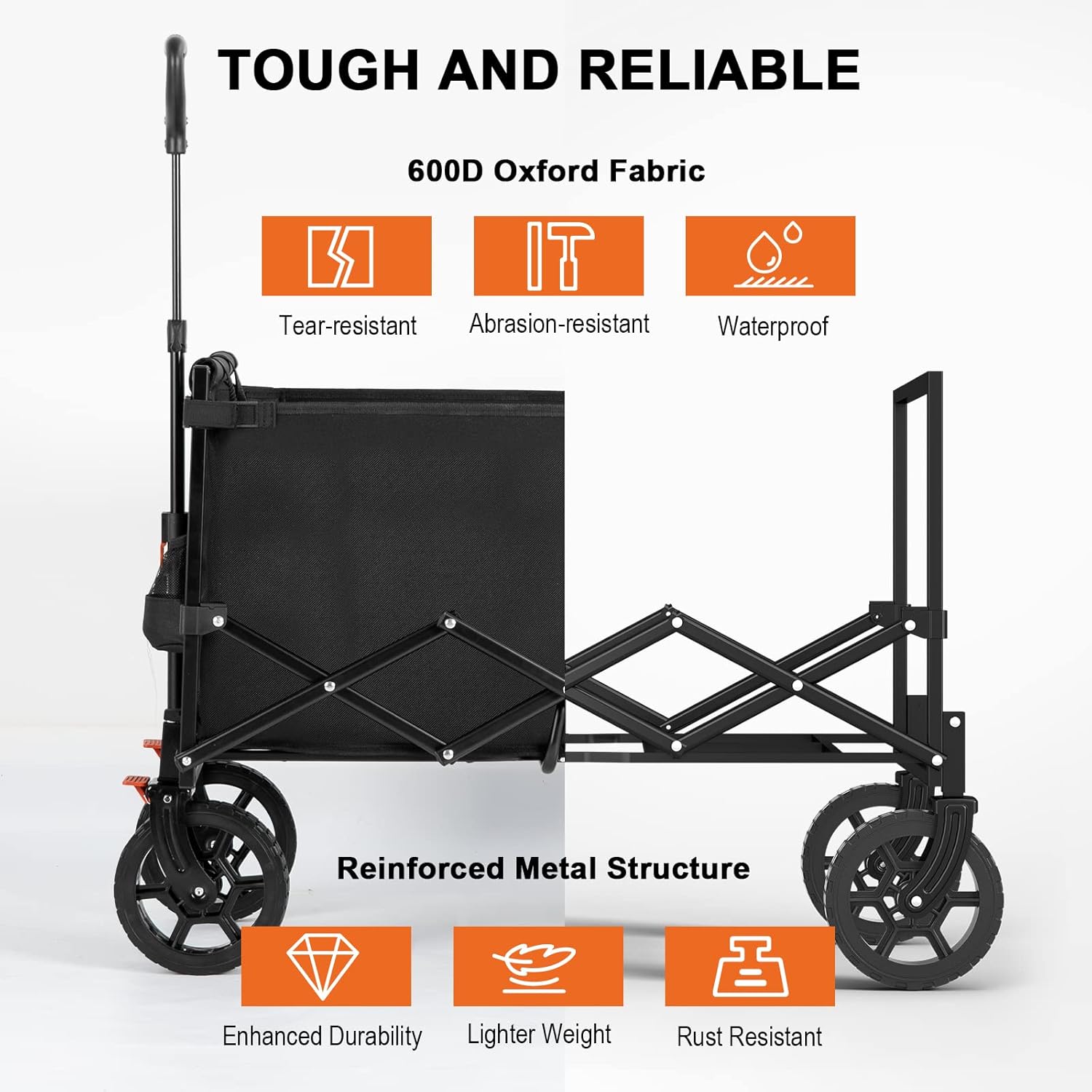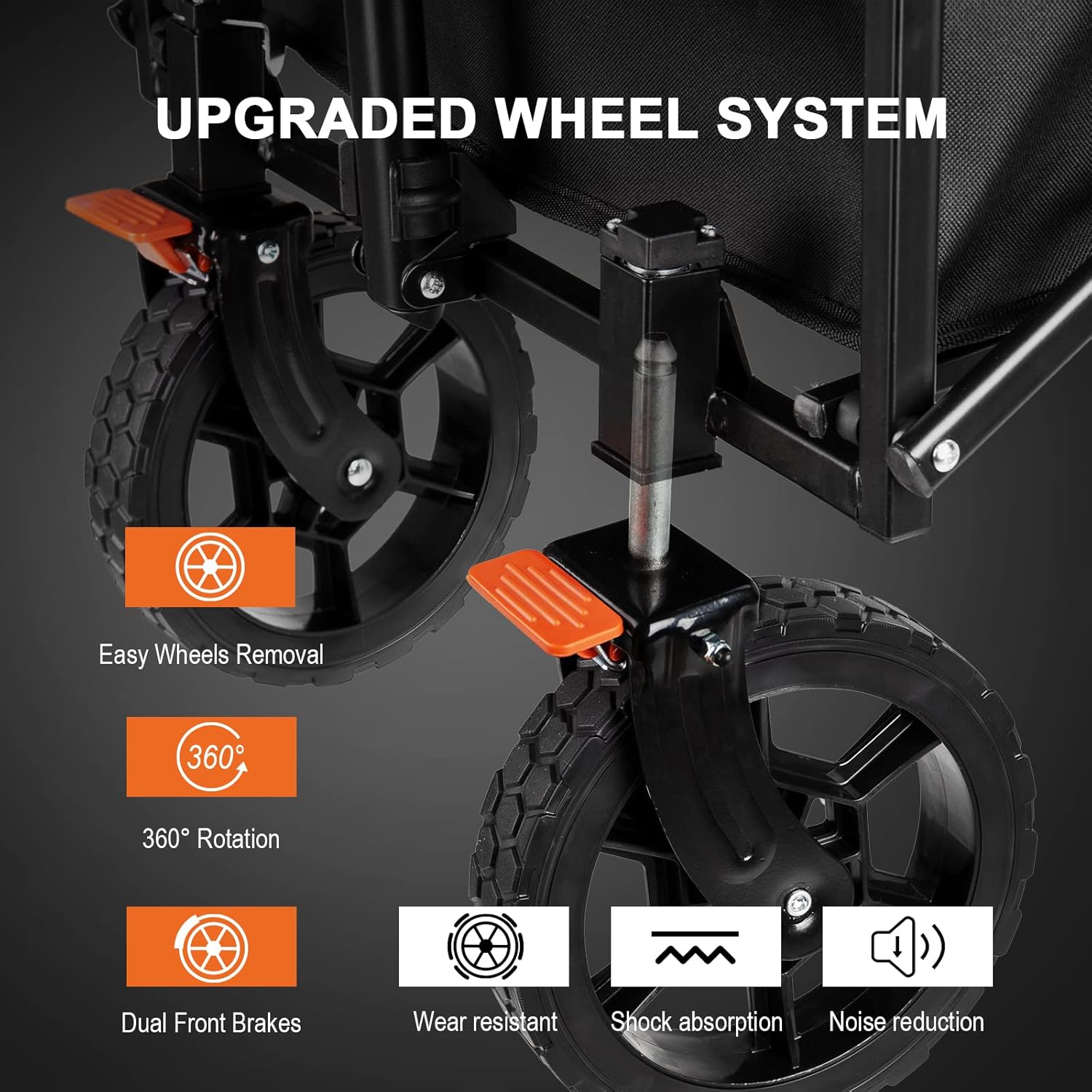 Navatiee 140L Wagon Cart Foldable, Large Capacity Collapsible Wagon with Smallest Folding Design, Utility Grocery Cart for Camping Shopping Sports, Black