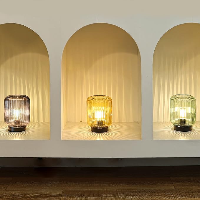 • 【DECORATIVE GLASS TABLE LAMP】 Our battery operated lamp is made of high quality glass, which features a modern elegant style and is more valuable. Different from plastic table lamps, it is more durable in daily use. You can decor your home by putting this modern lamp any where and when you turn on the cordless lamp, it emits beautiful luminous light and adds romance to your home. Must be a nice addition for your bedroom and hallway...