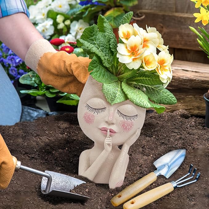 • 🌷【Excellent Drainage Holes】These face planters pots head have drainage holes at the bottom to drain excess water, ensure better water circulation and air infiltration, protect the healthy growth of plant roots and avoid overwatering of plants (Our products are plant-free)