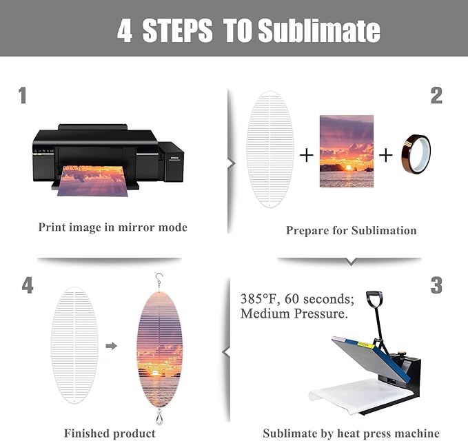 • 【Perfect Sublimation Coating】Our 3D Double Sided Wind Spinners come with premium sublimation coating that promise the sublimation print colors bright and won’t fade. It can be personalized both sides with single or 2 different designs. Heat press setting 385°F for 60 seconds; Medium pressure.